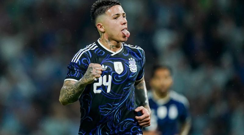 Enzo Fernández sigue de racha y abrió el marcador ante Mauritania El mediocampista, de gran presente en el Chelsea, marcó el primero de Argentina a los 17 minutos del primer tiempo.